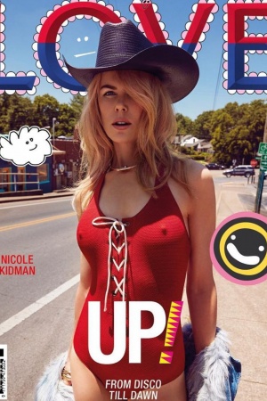 Николь Кидман нисколько не стесняется своего возраста – 50-летняя актриса снялась для обложки нового выпуска журнала Love Magazine в купальнике. Помимо красного купальника, через который можно рассмотреть и формы Николь, она позирует в ковбойской шляпе и элегантном золотом украшении.