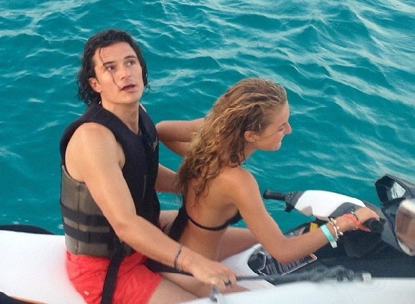 С ней Блум отрывался по полной - они гуляли по пляжу, танцевали на дискотеке, катались на гидроцикле, затем, даже присев, Орландо не отпускал талии свой новой пассии.
