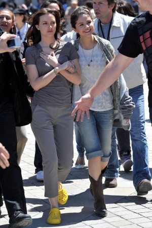 Последнее время знаменитости все чаще предпочитают обувать не высокие каблуки и лакированные туфли, а обыкновенную резиновую обувь. Выглядят они, конечно, ужасающе, но ведь это так удобно. Для прогулки по городу – самое оно. Хочется, конечно, верить, что ни одной знаменитости не взбредет в голову обувать такую "прелесть" на красную дорожку.