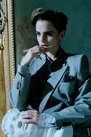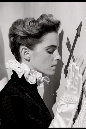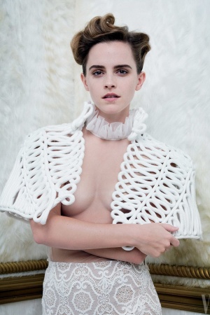 На фото Эмма предстает в строгих образах, однако не обошлось и без капли "ню".