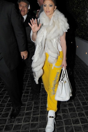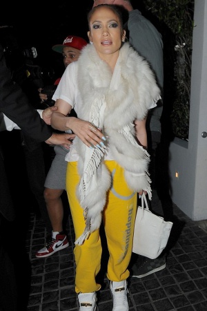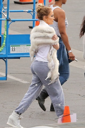 Прибыв на территорию студии, певица сменила дизайнерский комбинезон на удобные спортивные брюки, футболку и меховую накидку. Судя по тому, как сложены ее руки, можно предположить, что погода в Калифорнии еще прохладная.