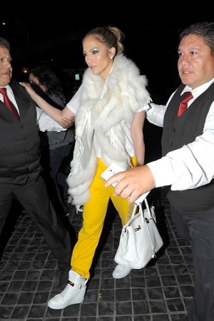 45-летняя красотка доказала, что она только становится лучше со временем, показав свою подтянутую фигуру и стройные ноги в синем комбинезоне от Elie Saab. Мать двоих детей, Дженнифер была замечена в Западном Голливуде, штат Калифорния, в паре туфель на каблуках в дневное время по дороге на съемки программы American Idol.