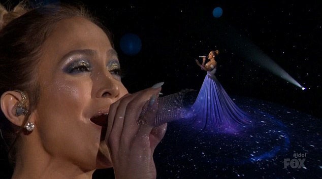 В тот же вечер она поразила зрителей платьем-проектором во время выступления с дебютной песней "Feel The Light" из нового мультипликационного фильма "Дом" (Home) на сцене American Idol.