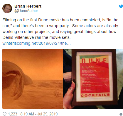 Как сообщает продюсер новой экранизации Брайан Герберт, съёмки "Дюны" Дени Вильнёва подошли к концу.