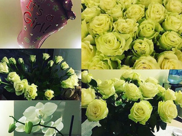 О радостном событии Акиньшина рассказала поклонникам через социальную сеть Instagram, опубликовав в своем микроблоге фото с цветами и шарами с поздравлениями.