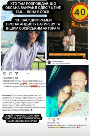 До этого украинцы думали, что одиозная артистка проживает в Одессе. Однако журналистка Алина Доротюк обнародовала скриншоты из инстаграма Байрак, на которых видно, что она находится в Санкт-Петербурге.