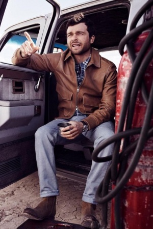 В преддверии премьеры спин-оффа "Звездных войн", посвященного молодому Хану Соло, этот самый Хан Соло – Олден Эренрайк – путешествует по страницам глянца; в майском Esquire появилась фотосессия с актером, который, похоже, задержится в киновселенной по "Звездным войнам" надолго.