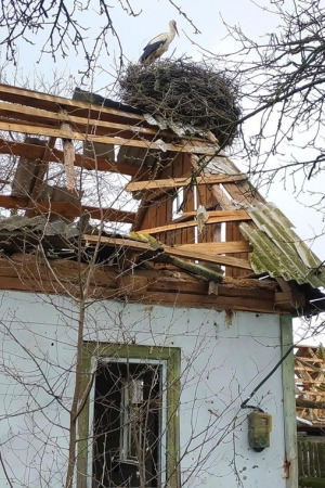 Она опубликовала фото разрушенного оккупантами дома, на останках крыши которого поселился аист.