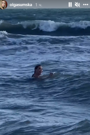 Кинозвезда опубликовала у себя на странице в instagram видео, на котором она плавает в шторм 3 балла. А также добавила, что однажды она купалась в море, когда шторм был 5 баллов. И тогда у нее сорвался купальник. В этот раз Ольге повезло больше и все осталось на месте.