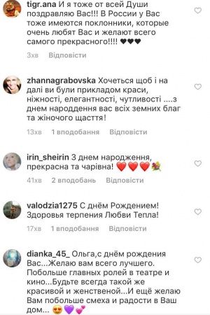 "Спасибо за искренние поздравления, тронута. Пусть Господь благословляет всех на добрые дела!", - пишет Ольга Сумская. Во очень быстро собрало сотни поздравлений. "Идеал женственности, бесконечного застоя и больше сказочных моментов", "Вы прекрасная женщина-радости по каждый день, здоровье, хороших людей рядом, новых ролей, позитива во всем", "Вы непревзойденная женщина!" - пишут поклонники в комментариях.