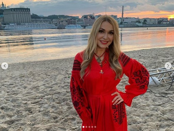 Актриса, которая часто выходит в свет в аутфитах в украинском стиле, и не этот раз не изменила себе. Для съемок Ольга выбрала алое платье-вышиванку.