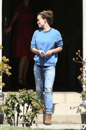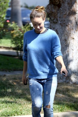 Оливия Уайлд попалась под прицел папарацци в Пасадене. Актриса ходила в гости к друзьям, а поэтому решила не заморачиваться ни с косметикой, ни с прической. Стоит сказать, что без макияжа и с прической "пучок-чесночок" Оливия выглядела очень даже недурно.