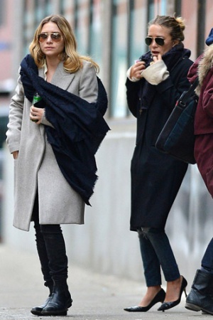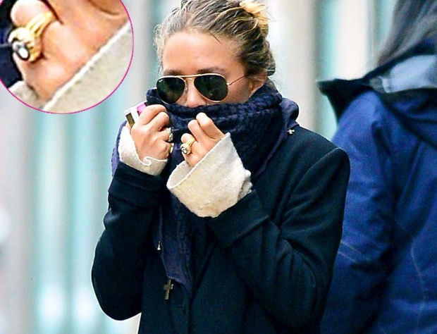 Прекрасный перстень с огромным бриллиантом кажется просто огромным на тоненькой ручке невесты Оливье Саркози. Как бы Мэри-Кейт не пряталась от журналистов за широким шарфом на людной улице Нью-Йорка, её всё равно подловили шагающей рядом с сестрой-близняшкой Эшли.