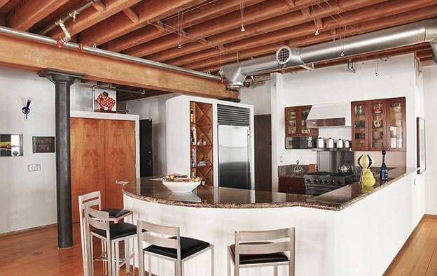 Это чердак переделанный в квартиру площадью около 500 кв.м. Помимо кухни и столовой, в ней есть три спальни, кабинет, две ванные комнаты, гардероб и большой гостевой холл. Из одной спальни он уже переделывает детскую для сына Флинна.