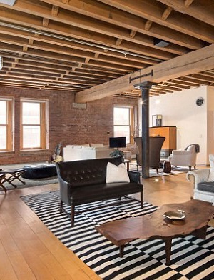 Квартира расположена на четвертом этаже бывшего складского помещения в модном нынче районе Трибека. Сейчас дом перестроен и состоит сплошь из респектабельных апартаментов. В квартире Блума имеется три спальни, две ванные комнаты, открытая кухня, просторная гостиная, столовая и 11 окон с роскошным видом на город, стены отделаны кирпичом, под потолком установлены деревянные балки, а помещение разделено несколькими железными колоннами.