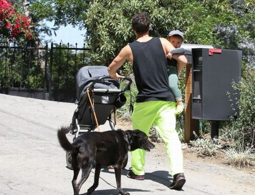 35-летнего актера и его годовалого сына сопровождал пес Сиди.