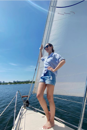 Телеведущая Катя Осадчая провела выходной день на палубе яхты вместе со своим мужем Юрием Горбуновым.