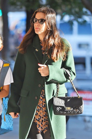 Актриса была замечена во время утренней прогулки с сыном по улицам Нью-Йорка. Прохладный осенний ветер заставил ее поменять любимые платья в цветочек на теплое шерстяное пальто. Выбор Лив Тайлер пал на модель актуального в сезоне осень-зима 2014 оттенка зеленого. Пальто классического кроя длиной чуть выше колена. Строгий, почти "мужской" фасон пальто позволил звезде подобрать к нему яркое платье-рубашку с ироничным синим узором.