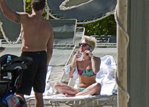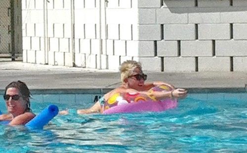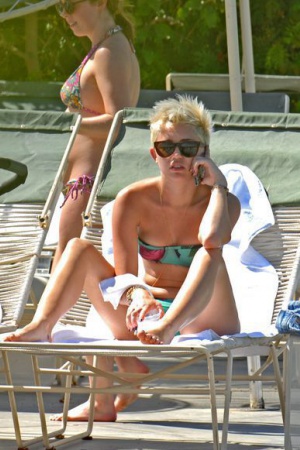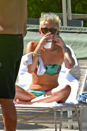 Майли плескалась в бассейне и принимала солнечные ванны.