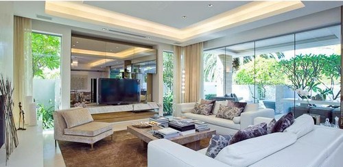 Сейчас особняк выставлен на продажу. В нем имеется шесть спален, пять ванных комнат, три просторных балкона и огромная кухня. На певром этаже расположена просторная гостиная с видом на тропический сад на улице. Разумеется, не обошлось без внушительного бассейна и удобного гаража на четыре автомобиля.