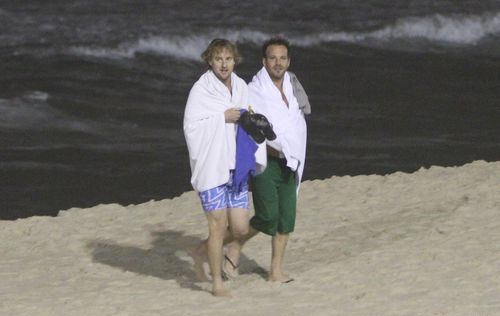 Оуэн Уилсон и Стивен Дорфф наслаждаются всеми радостями отдыха в Бразилии. Уилсон даже вытащил своего звездного приятеля искупаться ночью.