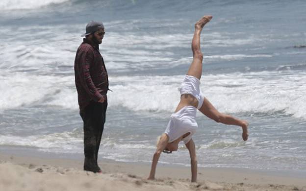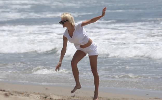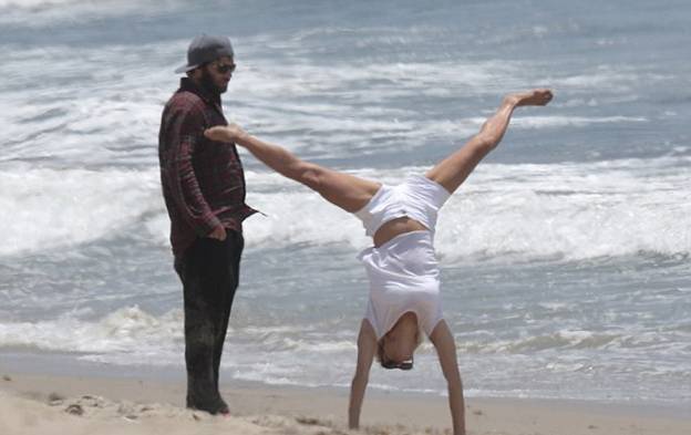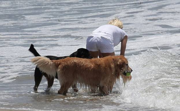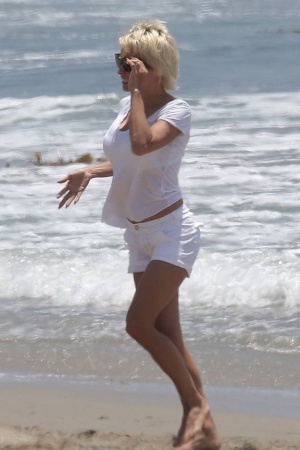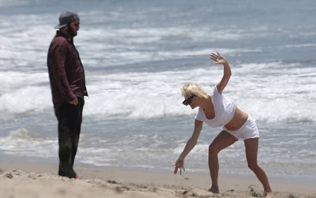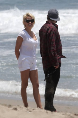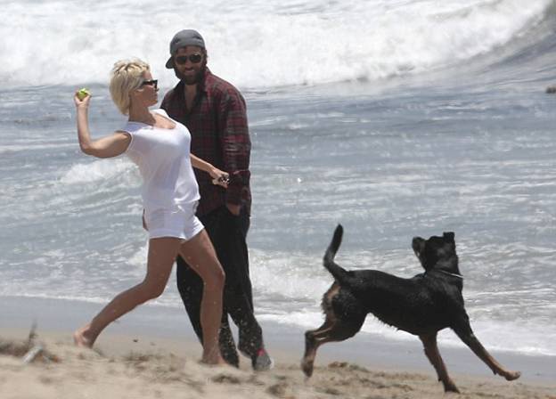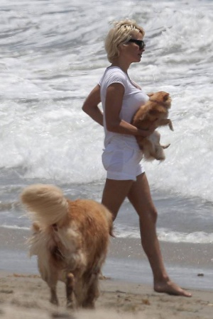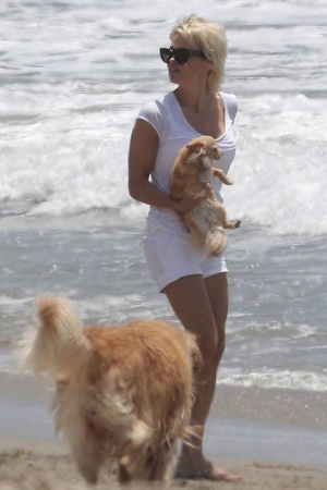 На побережье Малибу были замечены Памела Андерсон и ее супруг Рик Саломон. Пара выгуливала собак и Памела демонстрировала мужу свою отличную физическую подготовку.