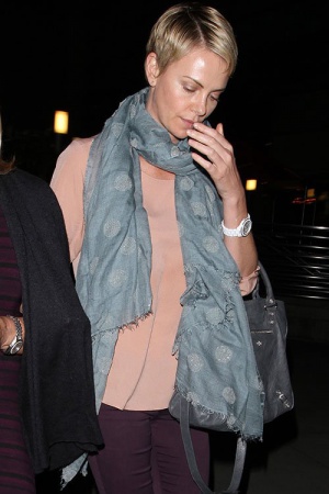 Заприметив папарацци, Шарлиз попыталась закрыть лицо руками, однако фотографам таки посчастливилось сделать несколько снимков актрисы без косметики. Все же, ничего шокирующего папарацци увидеть не удалось, ведь даже без макияжа Шарлиз – настоящая красотка!