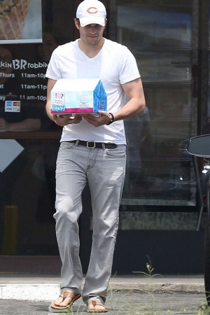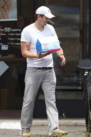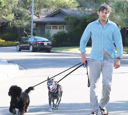 Также Эштон Катчер в гордом одиночестве выгулял домашних любимцев.