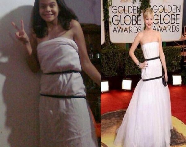 Белоснежное платье Дженнифер Лоуренс от Dior, в котором она вчера появилась на церемонии вручения премий "Золотой глобус", неожиданно разочаровало модных критиков и сразу же попало в список самых худших нарядов вечера. А пользователи интернета уже даже успели наделать большое количество "фотожаб" и "самострелов" на тему платья Дженнифер, которое с чем только не сравнивали - начиная от простыни и заканчивая сосисками. Интересно, что же по этому поводу думает сама актриса. А, если учесть ее знойный нрав и любовь к смелым выходкам, то реакция Дженнифер должна быть особенно бурной. Что ж, нам тем временем остается лишь любоваться новым интернет-мемом и ждать, пока сама Лоуренс выскажется на эту тему.