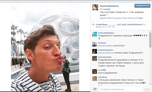 "Мы самые счастливые на свете! Теперь нас четверо: Павел, Ляйсан, Роберт и София. Дочка, с днем рождения! Лясенька, ты моя героиня! Чемпионка! Господи, спасибо!".