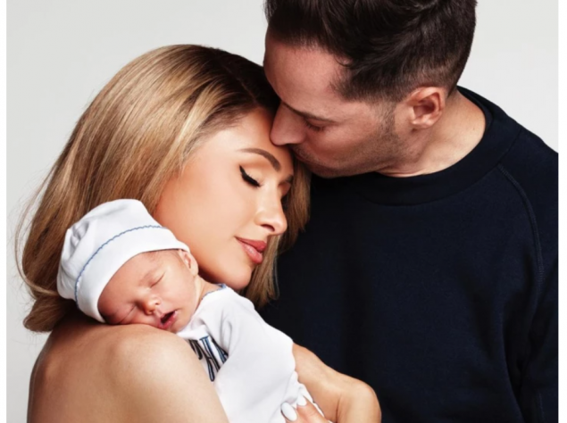 Кроме того, певица показала еще одно фото, на котором также есть ее муж Картер Реум. Он целует Хилтон в лоб, а Пэрис в это время держит малыша на плече.
