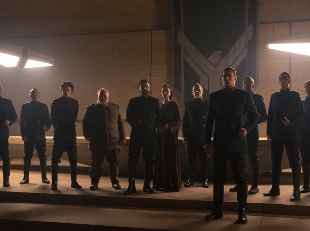 На снимках изображены персонажи Тимоти Шаламе, Ребекки Фергюсон, Оскара Айзека, Джоша Бролина, Зендаи, Джейсона Момоа, Хавьера Бардема. Напомним, Шаламе исполняет главную роль, отпрыска могущественной феодальной семьи Пола Атрейдеса, который должен установить мир между семьями, сражающимися за право контролировать планету Арракис и ее волшебное вещество «спайс», позволяющее путешествовать через вселенную.