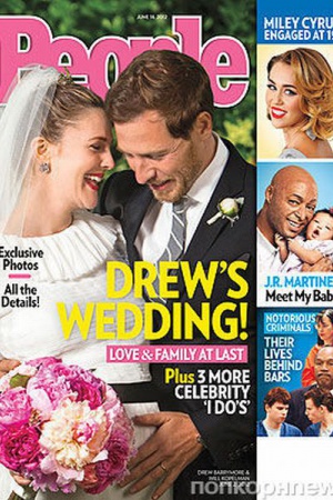 Именно журналу People Дрю Бэрримор предоставила возможность осветить свою свадьбу с Уиллом Копельманом, конечно же, за определенную сумму денег, которая так нужна новой семье, ждущей пополнения. На обложке номера счастливую Дрю в подвенечном платье от Карла Лагерфельда одной рукой нежно обнимает жених , а другой держится за ее уже заметный животик.