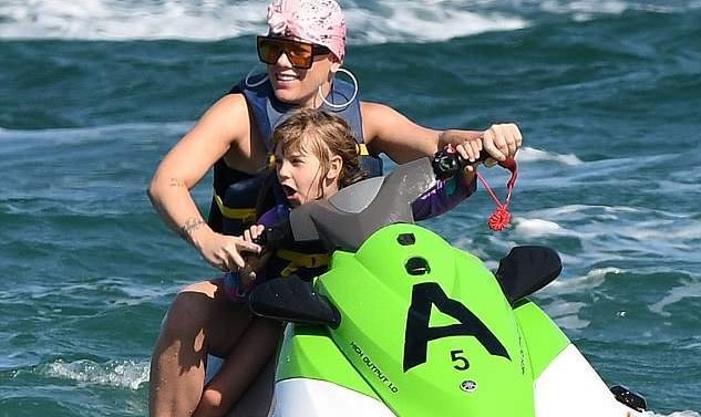 Пара с детьми рассекала на гидроциклах, а также нежилась на солнышке и прыгала на батутах.