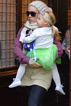 Однако на днях папарацци удалось сделать несколько снимков звездной мамы с заметно позврослевшей дочкой - Пинк и Уиллоу были сфотографированы в Нью-Йорке.