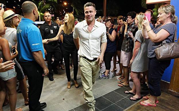 Анджелина Джоли и Брэд Питт посетили местный бар в небольшом городке Эрли-Бич, штат Квинсленд. Голливудские звезды вызвали настоящий переполох, появившись вдвоем без предупреждения в заведении "Shipwreck Bar & Grill".