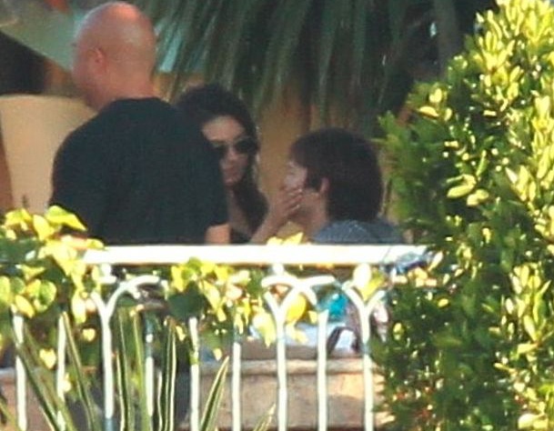 Несмотря на опровержение слухов о страстном романе, папарацци удалось сделать несколько снимков романтичных поцелуев звездной пары. На голливудской вечеринке бывший супруг Деми Мур и звезда "Черного лебедя" позволили себе расслабиться и забыть об объективах всевидящих папарацци. На фото Мила нежно гладит Эштона по лицу, сидя у него на коленях, а также целует его в губы: