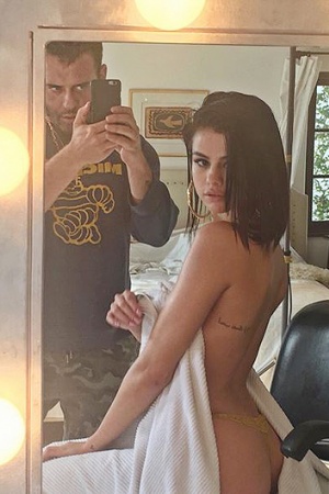 Известный фотограф Мерт Алас опубликовал в личном микроблоге кадр, на котором он запечатлен с обнаженной Селеной, которая лишь слегка прикрывается полотенцем.