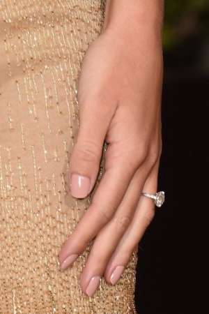 Роскошное помолвочное кольцо модель продемонстрировала на красной дорожке. Украшение было изготовлено ювелирным Домом Neil Lane. Это платиновое кольцо с бриллиантом в пять каратов. На покупку кольца для Роузи Джейсон потратил 350 тысяч долларов.