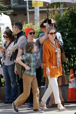 Джулианна Мур сменила свои роскошные рыжие локоны на седой парик для роли в новом фильме. 55-летняя актриса сейчас занята на съемках картины "Мир, полный чудес". Несколько дней назад папарацци заметили Джулианну и съемочную группу на улицах Нью-Йорка.