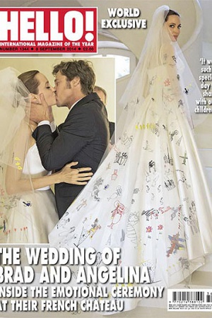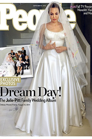 Итак, кадры со свадьбы украсили обложки HELLO! и People. Главная роль, разумеется, досталась прекрасной невесте: на ней в этот день было белое платье от Atelier Versace, созданное дизайнером бренда Луиджи Масси. Анджелина говорит: