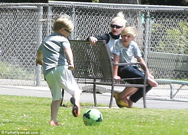 И пока папарацци не сводили объективы камер с самой певицы, она же не выпускала ни одного из своих сыновей из виду пока те играли в футбол на солнце.