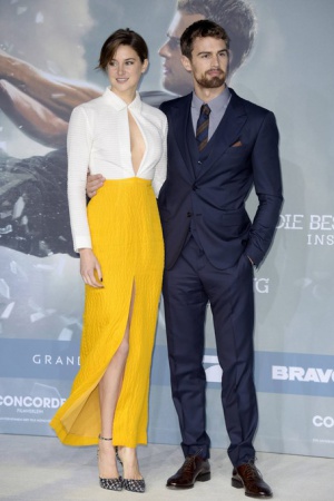 Шейлин, исполнившая в фильме главную роль бесстрашной Трис Прайор, появилась на красной дорожке в белом топе с пикантным декольте и желтой юбке Emilia Wickstead. Тео остается верен классическому стилю — темно-синий костюм-тройка, голубая рубашка и галстук в полоску.