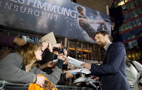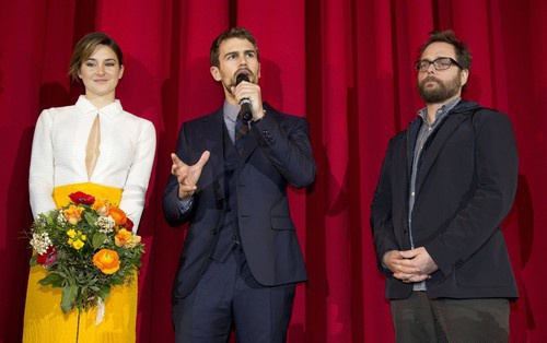 Тео Джеймс и Шейлин Вудли представили фильм "Дивергент, глава 2: Инсургент" в Берлине. Компанию им составил режиссер картины Роберт Швентке.