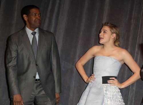 Хлоя Морец, Хейли Беннетт и Дензел Вашингтон представили в Торонто свою новую картину "Праведник".