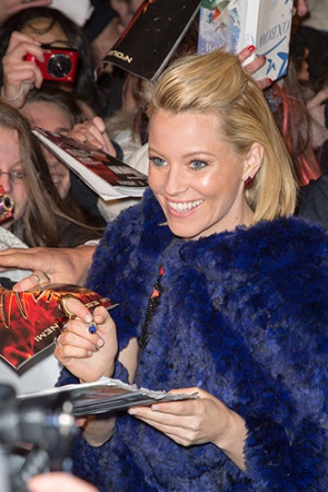 Коллега Лоуренс Элизабет Бэнкс для появления в самой модной столице мира выбрала не менее яркий и экстравагантный образ: 39-летняя актриса представила total look из новой весенне-летней коллекции Alexander McQueen. Комплект из платья и клатча с яркими аппликациями Бэнкс дополнила массивными кольцами и лаконичными серьгами Baccarat.