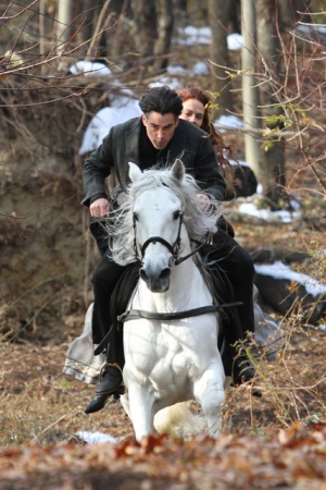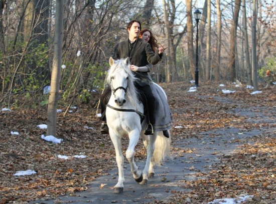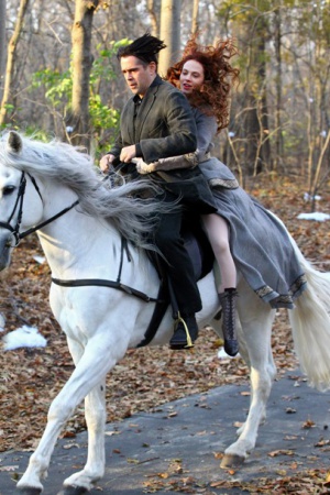 Колин Фаррелл продолжает сниматься в драматическом фэнтези "Зимняя сказка". На сей раз папарацци засняли на площадке и возлюбленную главного героя в исполнении актрисы Джессики Браун-Финдли. Злодея в фильме, напомним, играет Рассел Кроу.