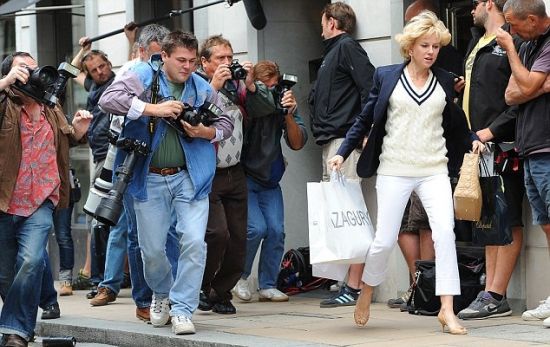 На днях снималась сцена, когда принцесса – самая, как говорят, фотографируемая женщина на планете, возвращаясь из магазина с покупками, подверглась атаке папарацци и вынуждена была прятаться от них в телефонной будке. По-настоящему страшно…
