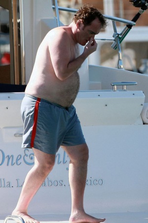 Даже на фоне не самой стройной блондинки Тарантино выглядел настоящим колобком. 49-летний режиссер к грядущему юбилею успел отрастить внушительных размеров живот. Когда он прыгал в воды Калифорнийского залива, у папарацци возникали серьезные опасения, что его прыжок "бомбочкой" вызовет цунами или заставит море выйти из берегов.