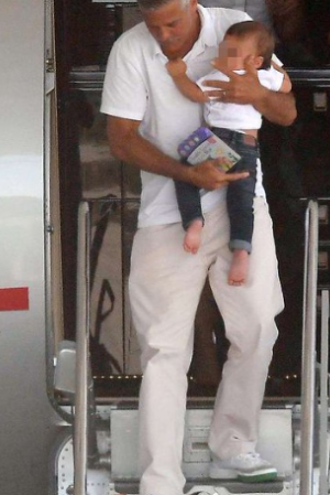Джордж и Амаль прилетели на частном самолете вместе с двойняшками — Александром и Эллой, которым в этом месяце исполнился один год.